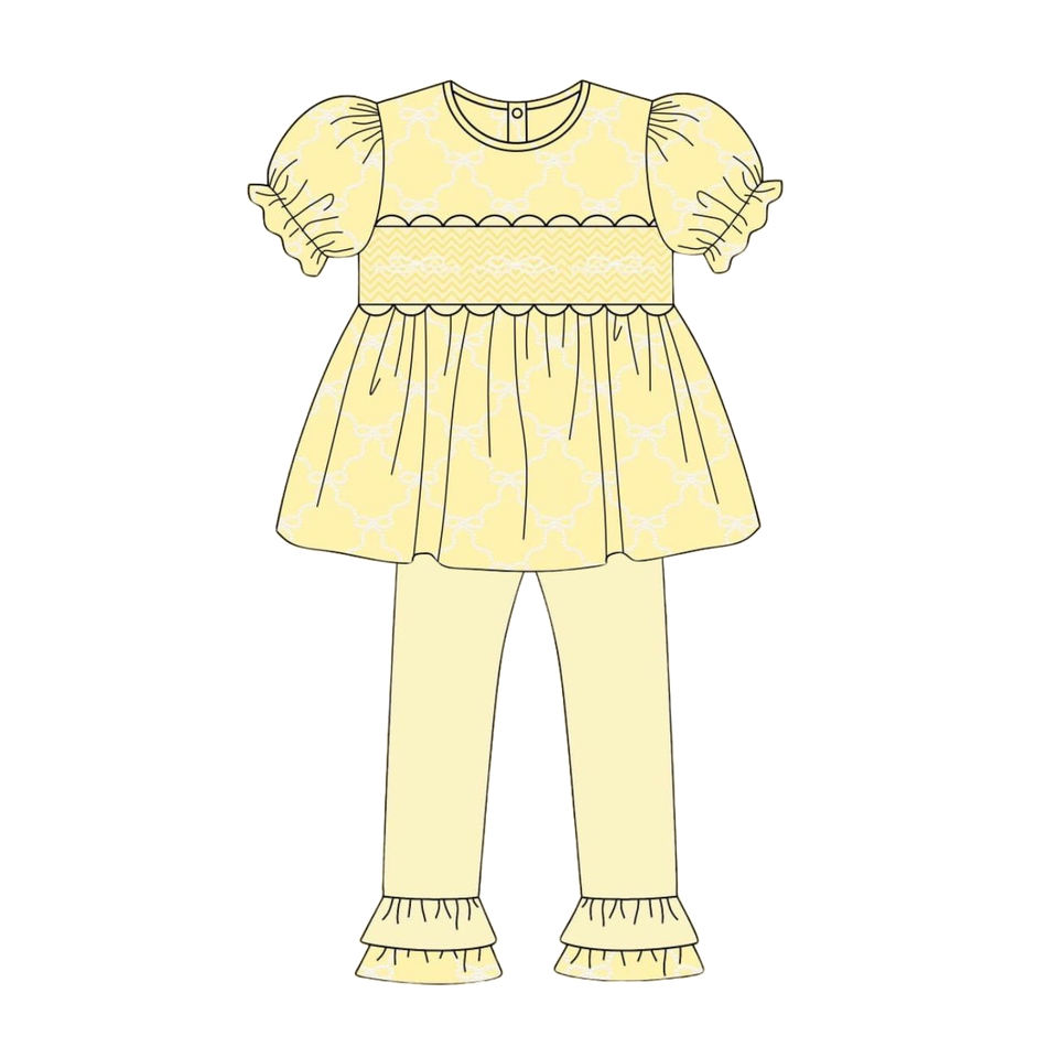 Preorder MOQ 5 Yellow Bows Girls Styles Wholesale Sisters Matching Clothes Children Factory Price Boutique New Fashion Clothing