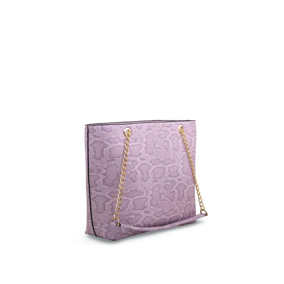 Preppy Vintage Lilac Shoulder Bag P54383 Single Chain and Pearl Decor Waterproof Zipper Closure for Summer and Winter