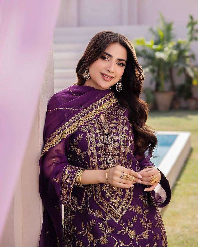 Product Name:Chinon Silk Sequence And Zari Embroidery Top And Palazzo With Dupatta