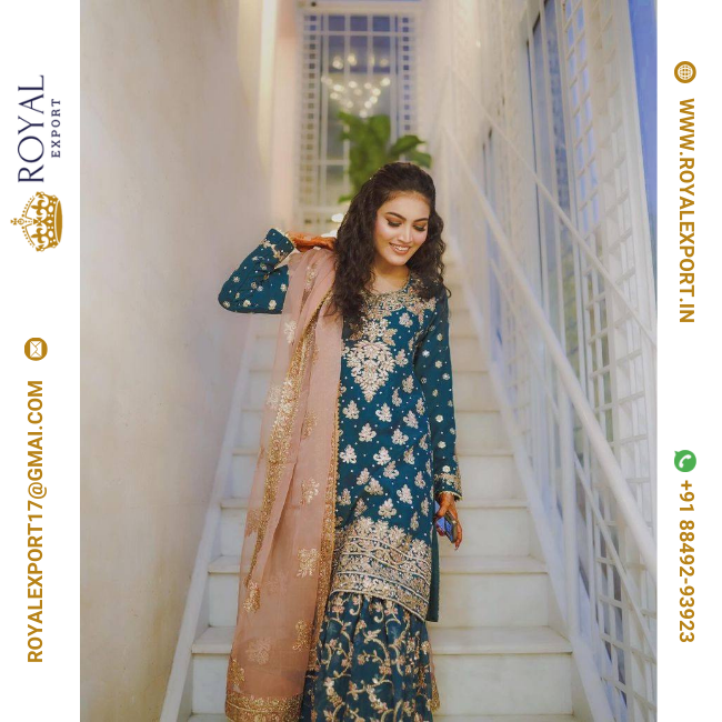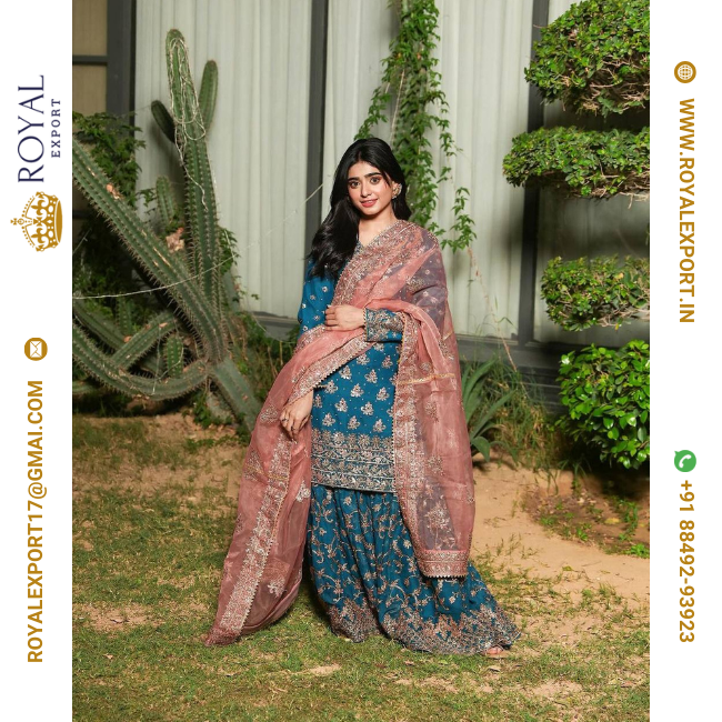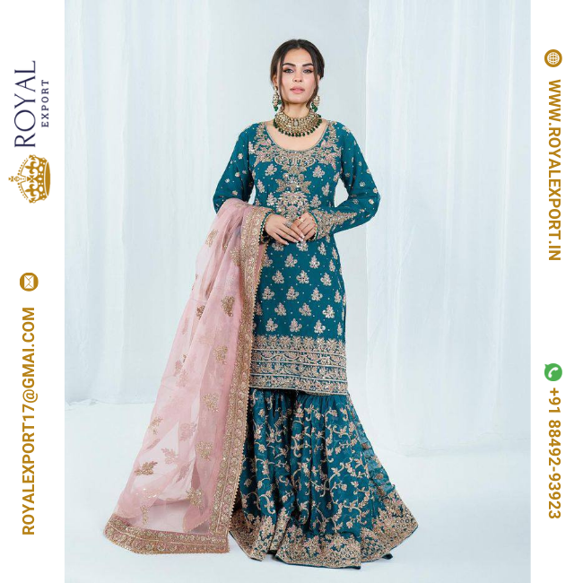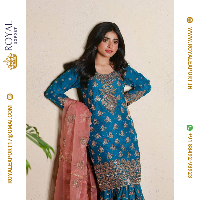 Presenting Good Quality Chinon Silk With Embroidered Sharara Suit Set Collection