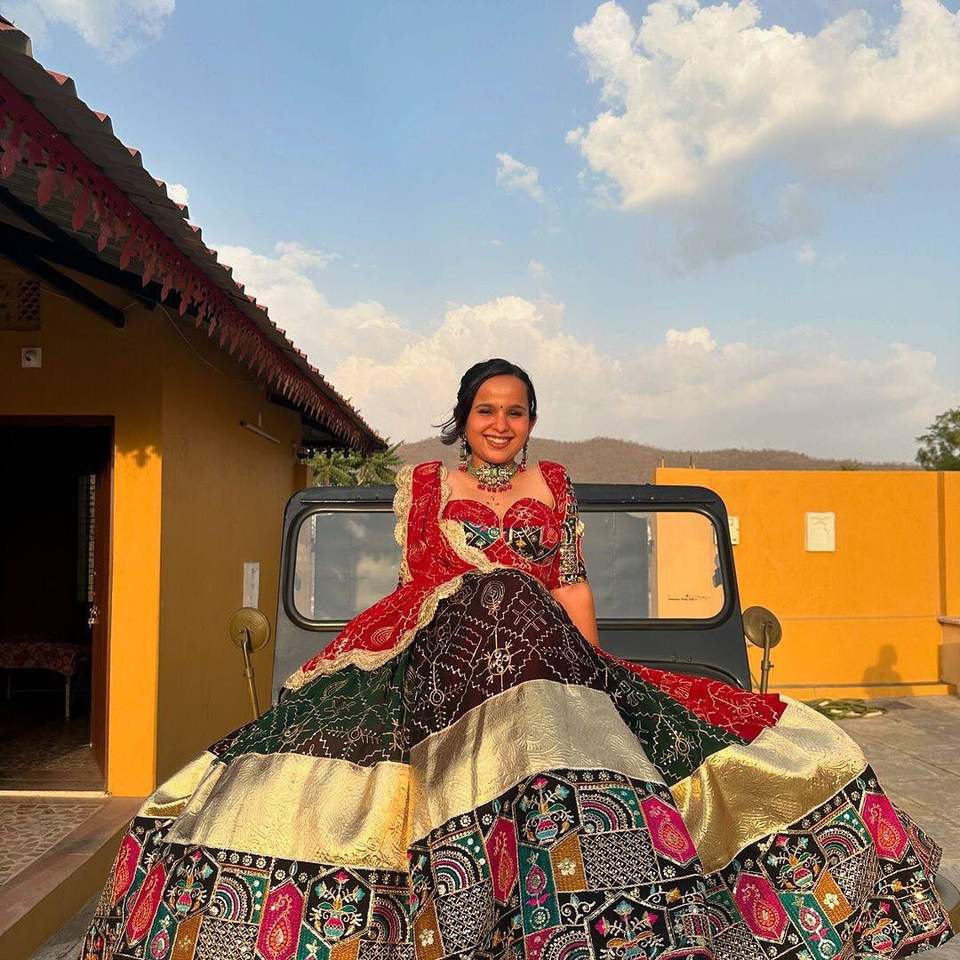 Muslin Cotton Print And Real Mirror Work Lehenga Choli Dupatta