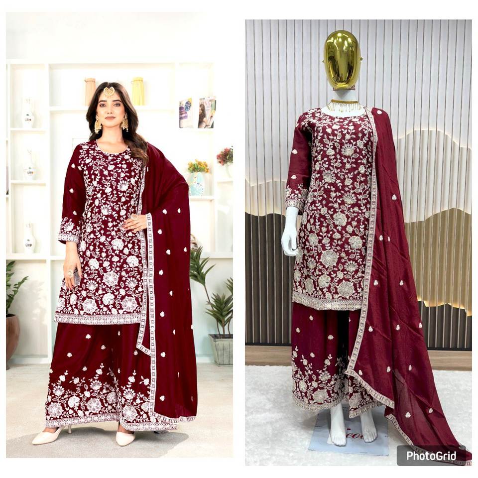 Presenting New Collection Modern Heavy Micro Cotton Embroidery Sequence Work Salwar Kameez Top Bottom Dupatta Set Party