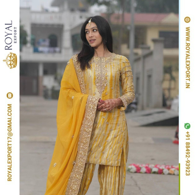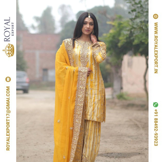 Presenting New Ready-made Collection With Pure Chinnon Silk and Heavy Embroidery Work Top-Patiala and Dupatta Set