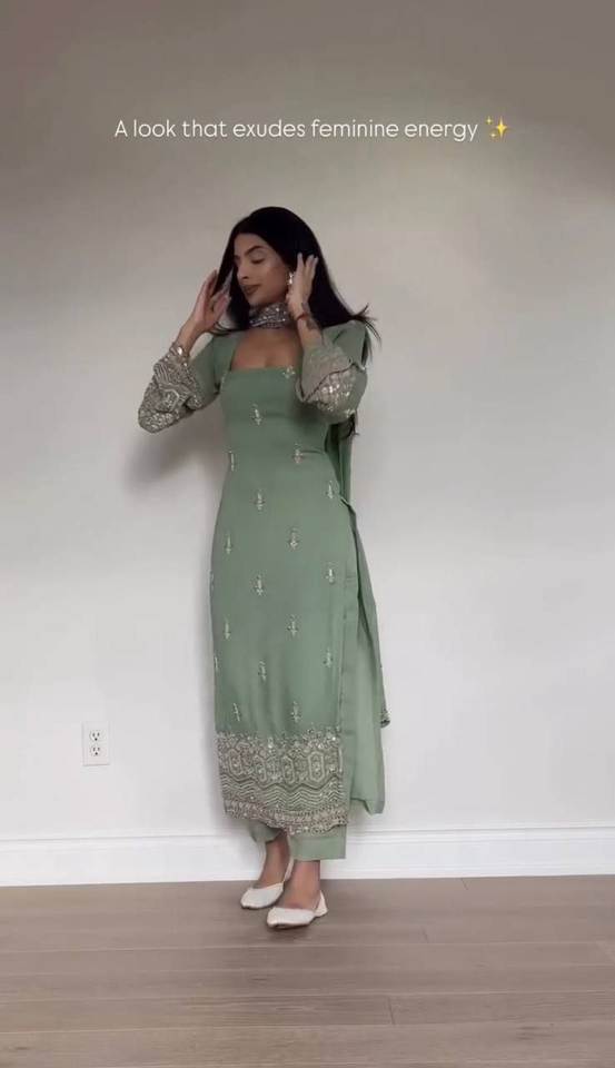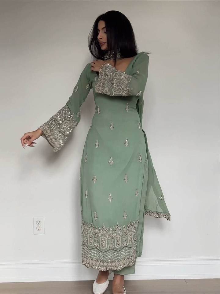 Product Name:Faux Georgette Sequence Work Top Bottom And Dupatta