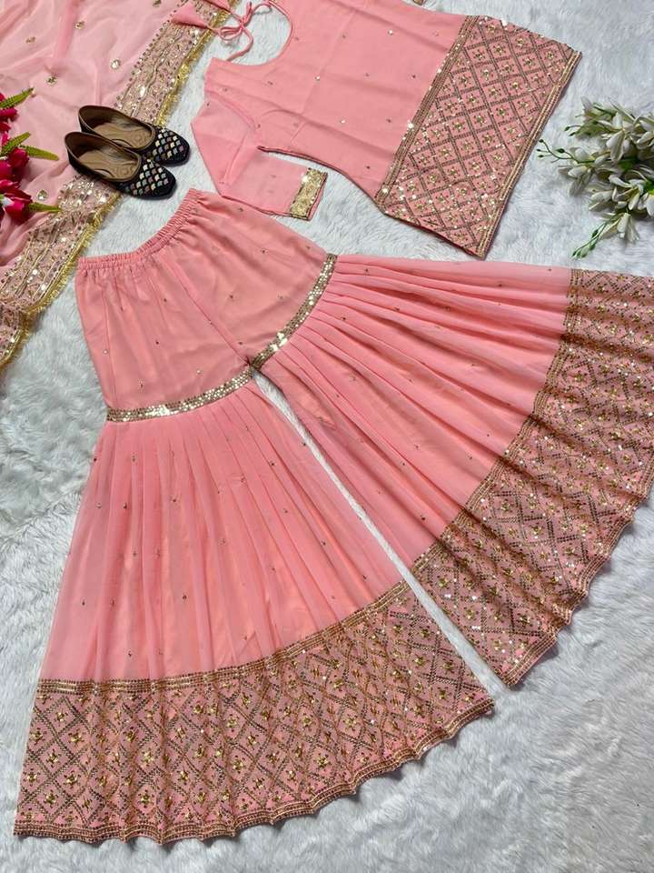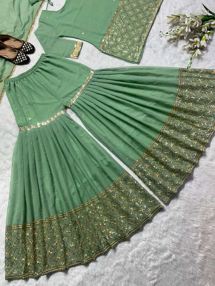 Presenting Party Wear Kurti Pant Dupatta Set Heavy Faux Georgette Fabric With Heavy Embroidery Sequence Work With Full Sleeve