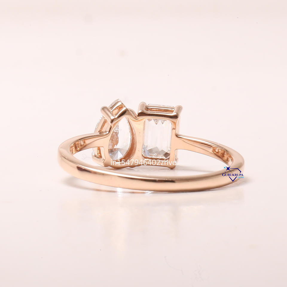 Stunning Lab Grown Pear Emerald Cut Diamond Solitaire Ring 925 Sterling Silver VVS Clarity Classic Wedding Jewelry