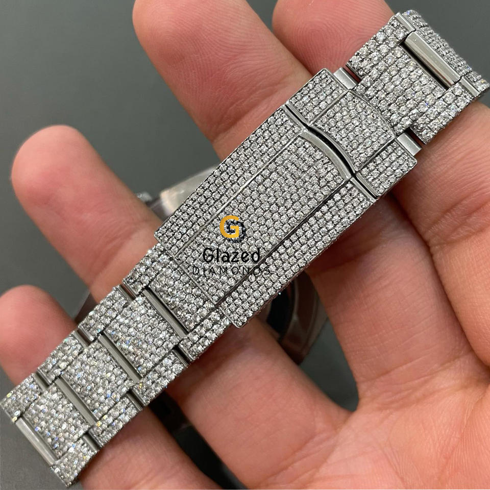 Presenting the Luxurious Beauty of Mens Moissanite Wristwatch With Pretty Round Cut Diamonds That Sparkle With Stainless Steel