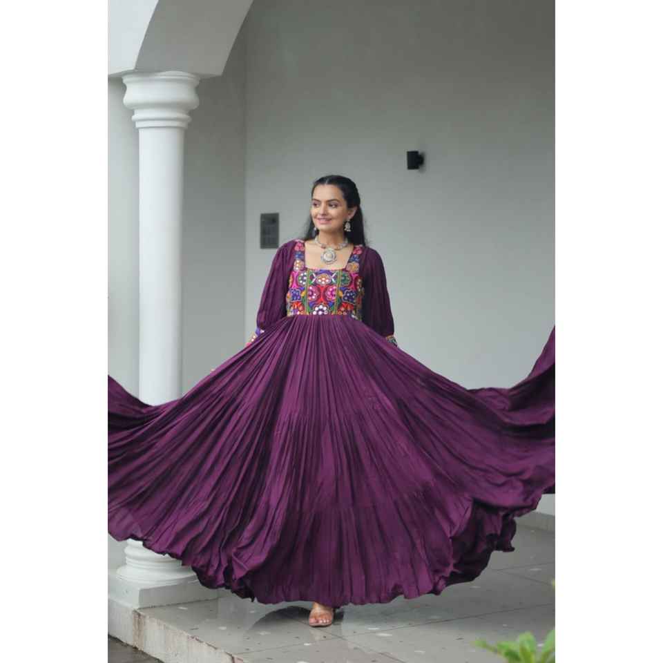 Presents this Stunning Beautiful Digital Printed Ethnic Wear Fully Flaired Gown Set Collection Half INNER Attached Heavy Crepe