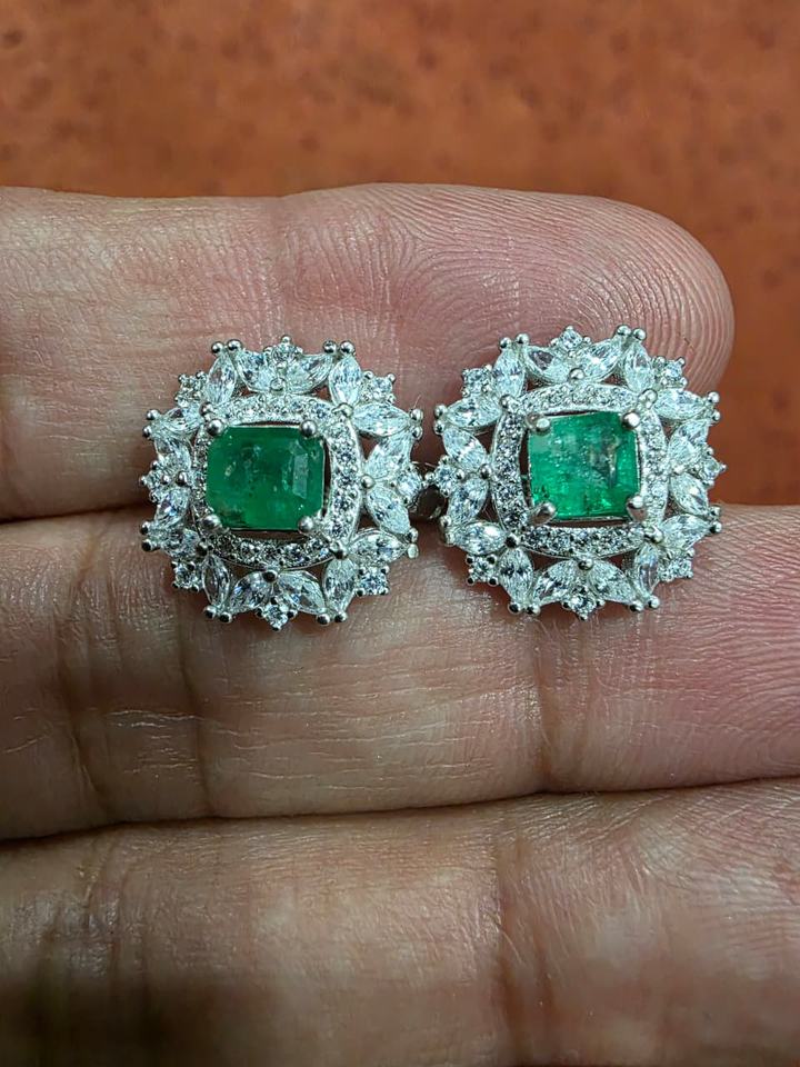 Prestigious Class Natural 1 Carat Sterling Silver Diamond Cut Zircon Halo Emerald Stud Earrings Engagement Wedding Gift Women's