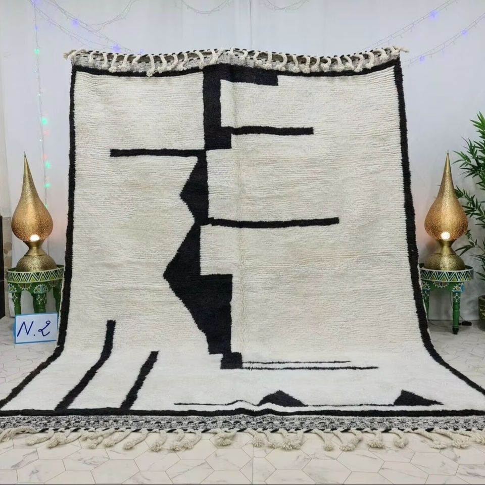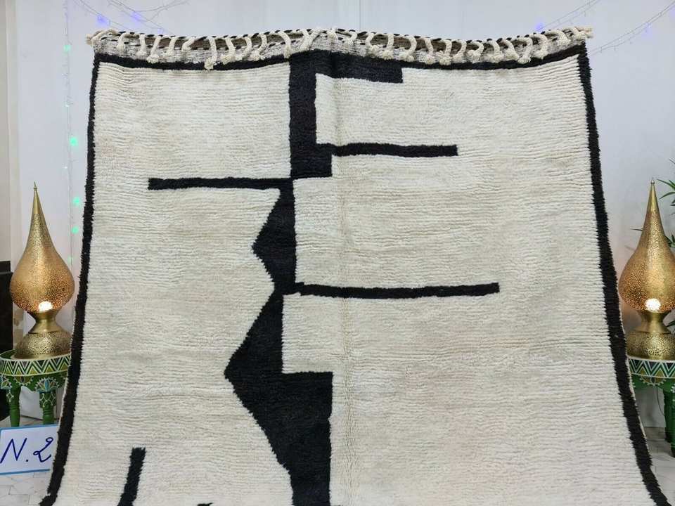 Pretty Beni Ourain Carpet Moroccan Handmade Rug White and Black Abstract Handmade Wool Carpet Azilal Berber Handwoven Rug