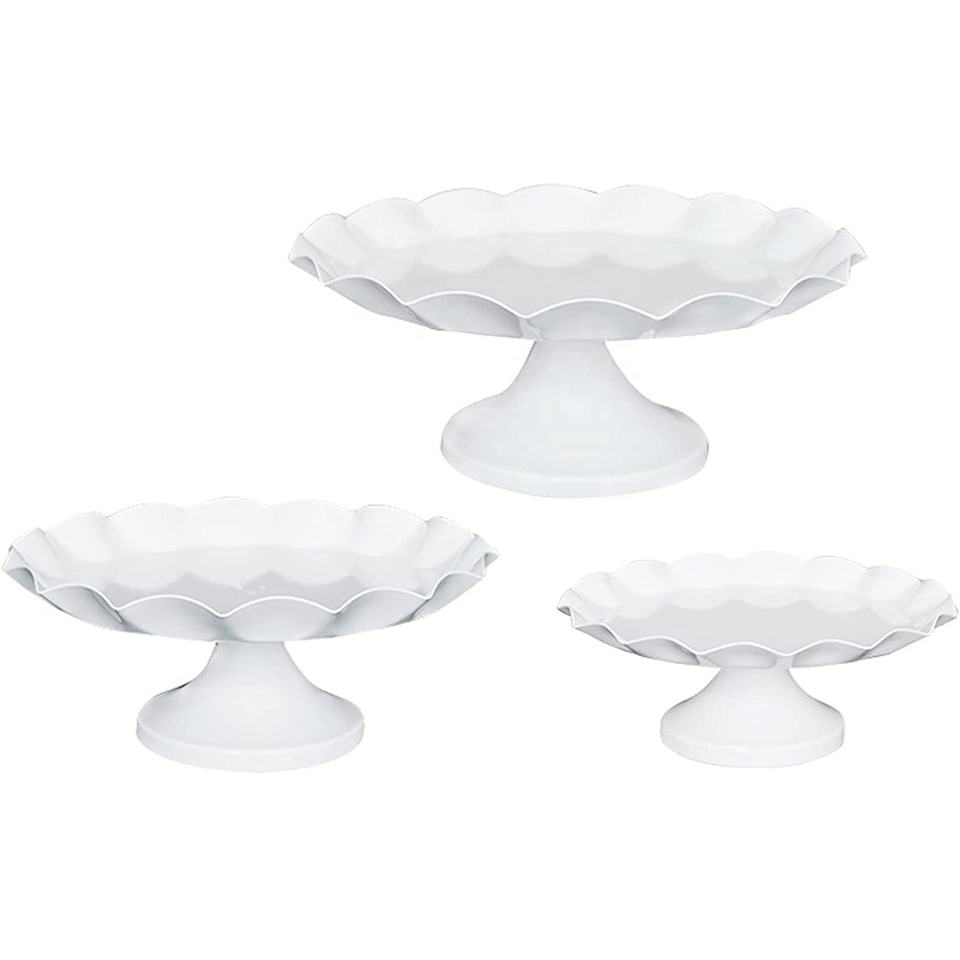 Pretty Floral Structured White Color Pedestal Cake Stand Customized Size High Quality Metallic Cake Displaying Stand