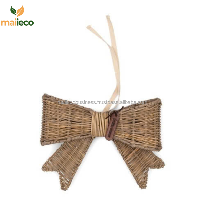 Pretty Natural Brown Rattan Bow Knot Door Decoration Festive Season Christmas Ornaments for Baby Toys Home Christmas Decorations