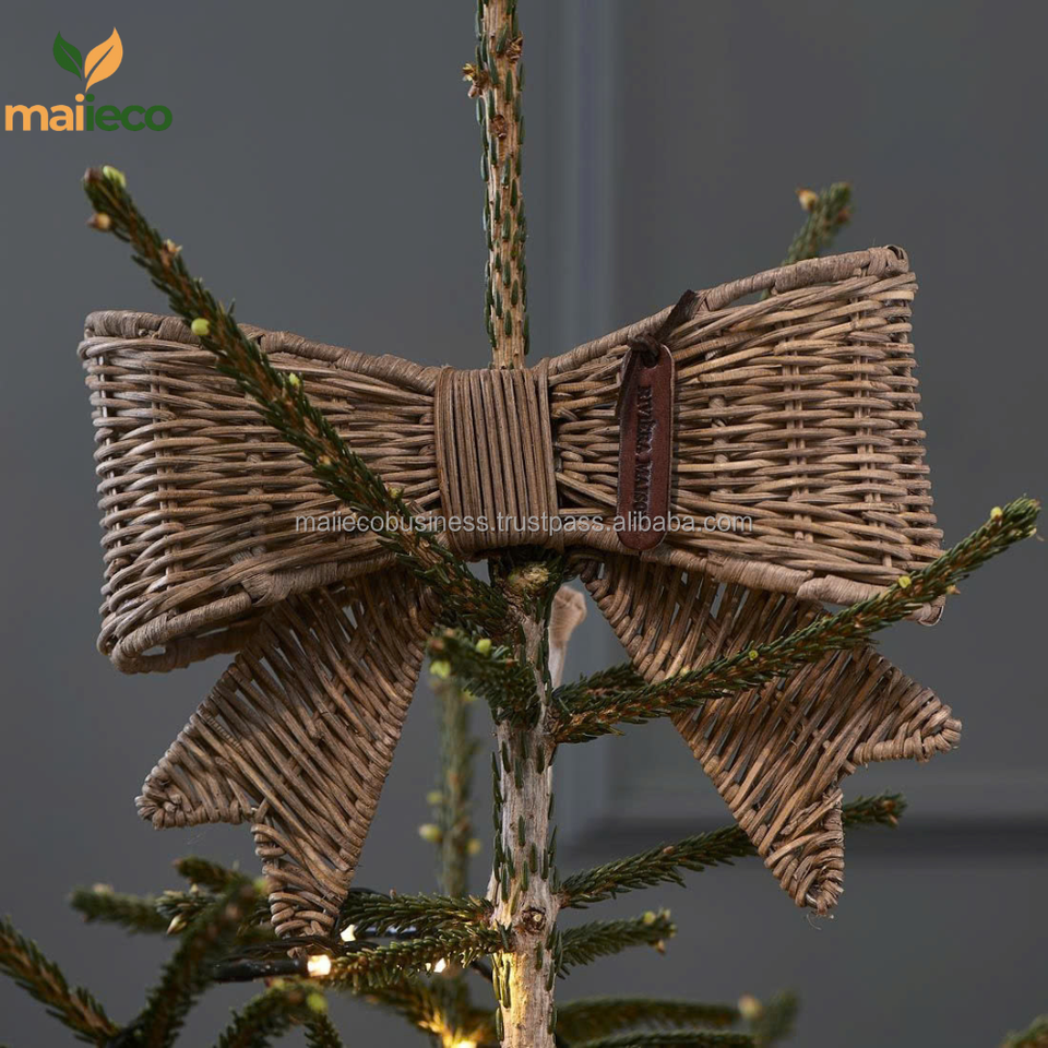 Pretty Natural Brown Rattan Bow Knot Door Decoration Bow Tie Ornaments for Christmas Baby Toys and Christmas Door Display