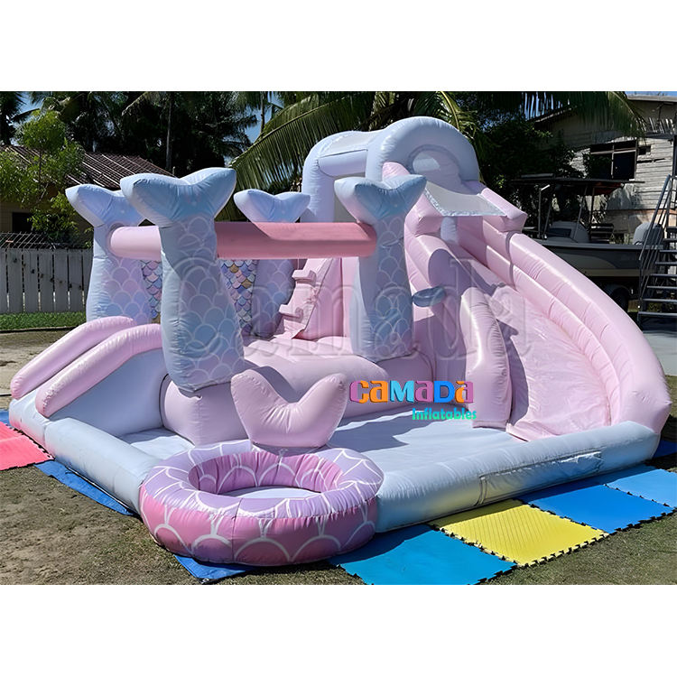 Pretty Pastel Color Inflatable Bounce House Jumping Castle with air Pump PVC Home Water Pool Slide and Ball Pit Mini Playground