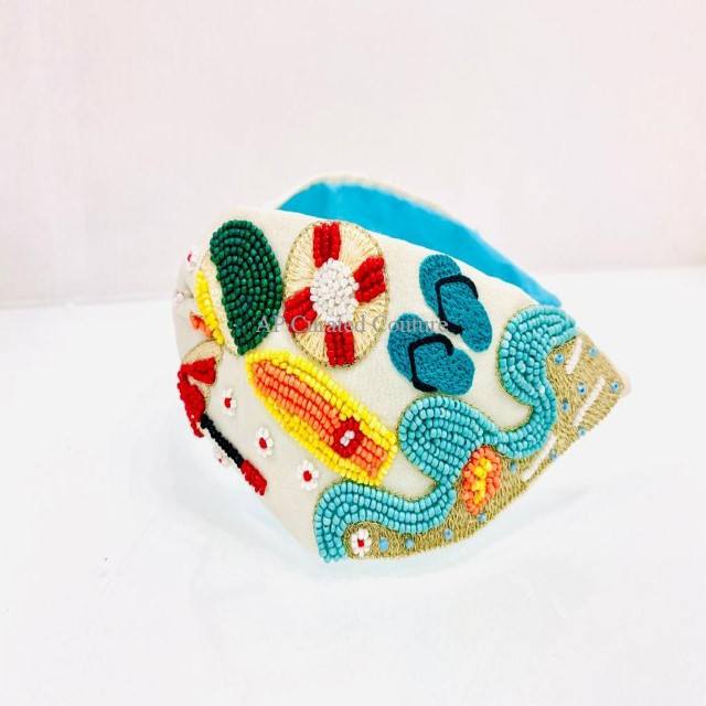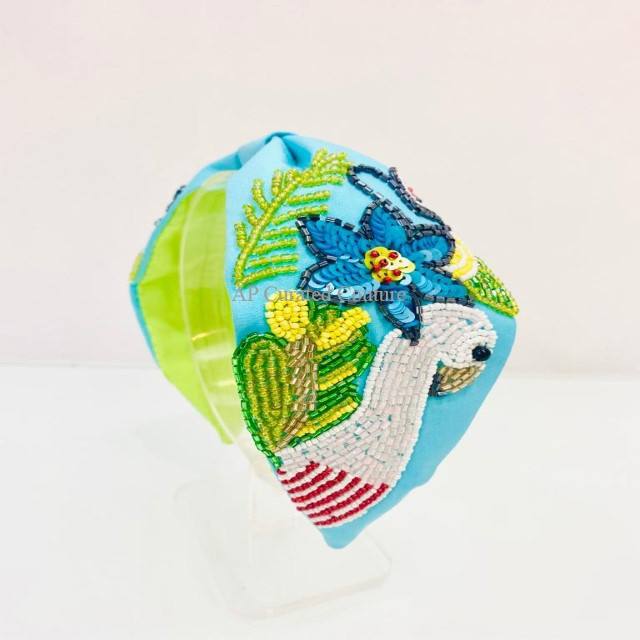 Pretty White Duck Floral Design Hand Embellished Custom Turban Hair Accessories Pretty Rhinestone Jeweled Turban Headbands