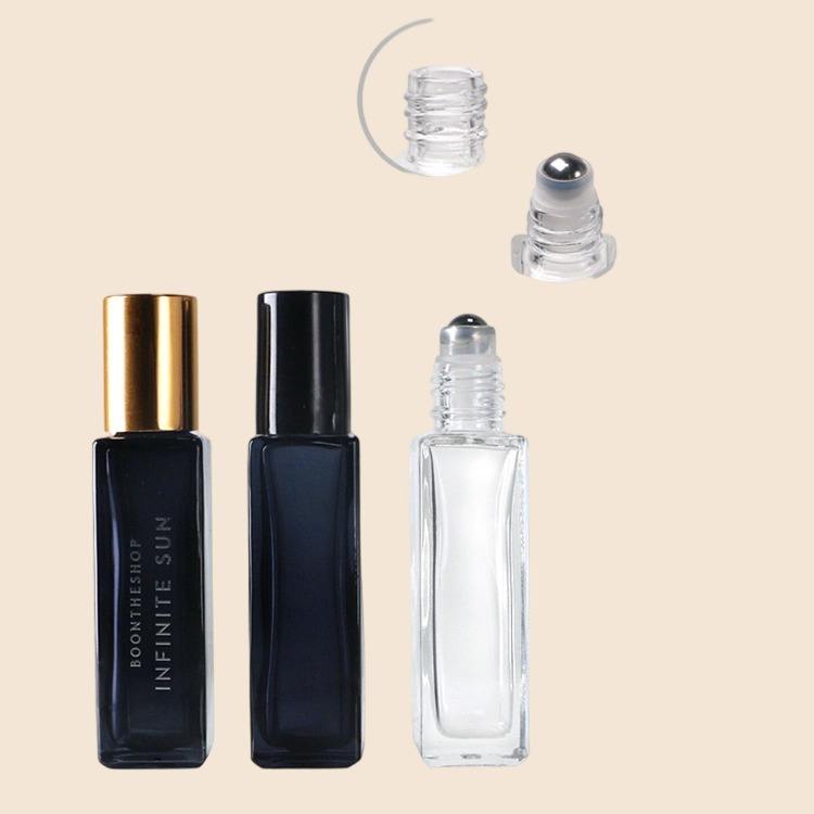 Price Luxury 10ml Ml 1/3 Oz Clear Black Square Perfume Roll on Glass Bottle With Metal Roller Bottle for Perfume Essential oil