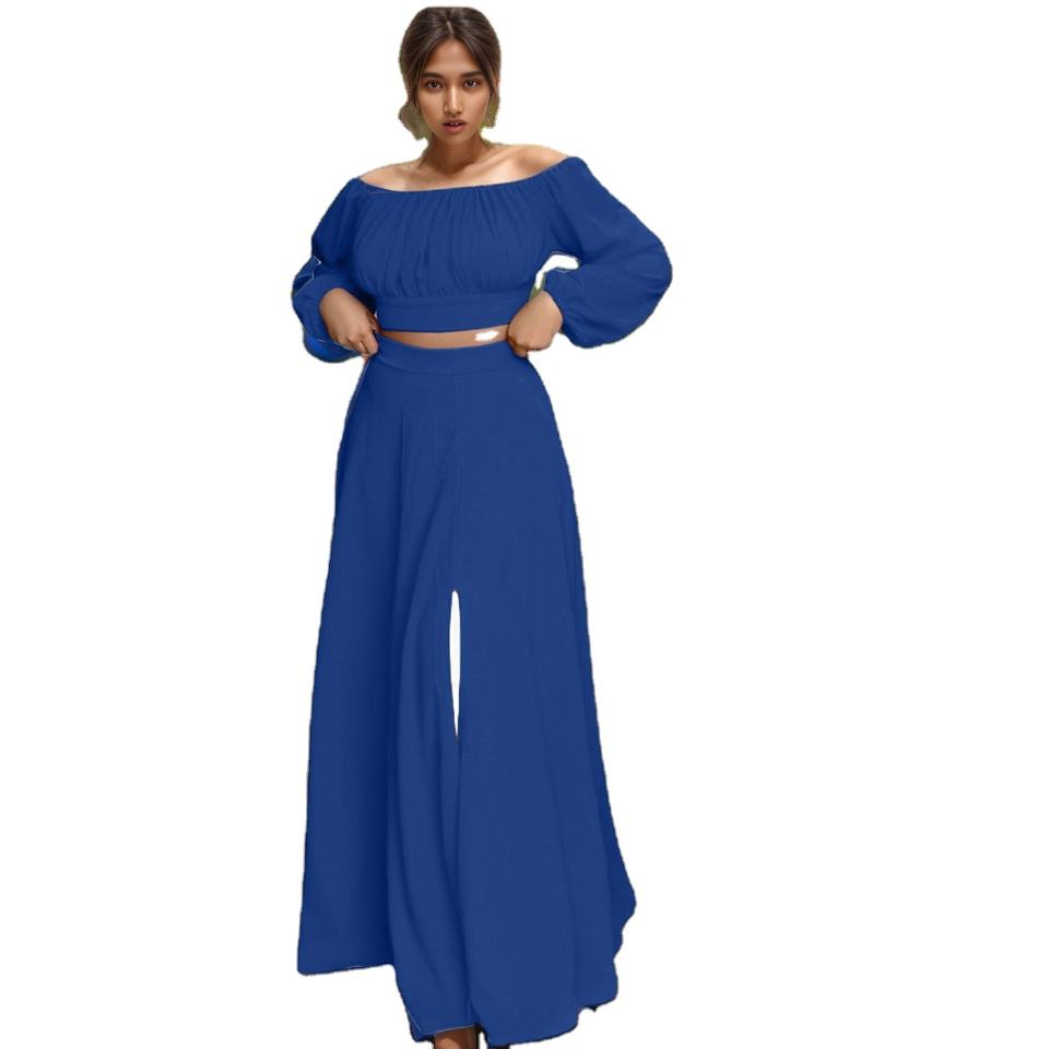 Price Solid Color Off Shoulder Long Sleeve Wide Leg Pant Set for Women Fashion