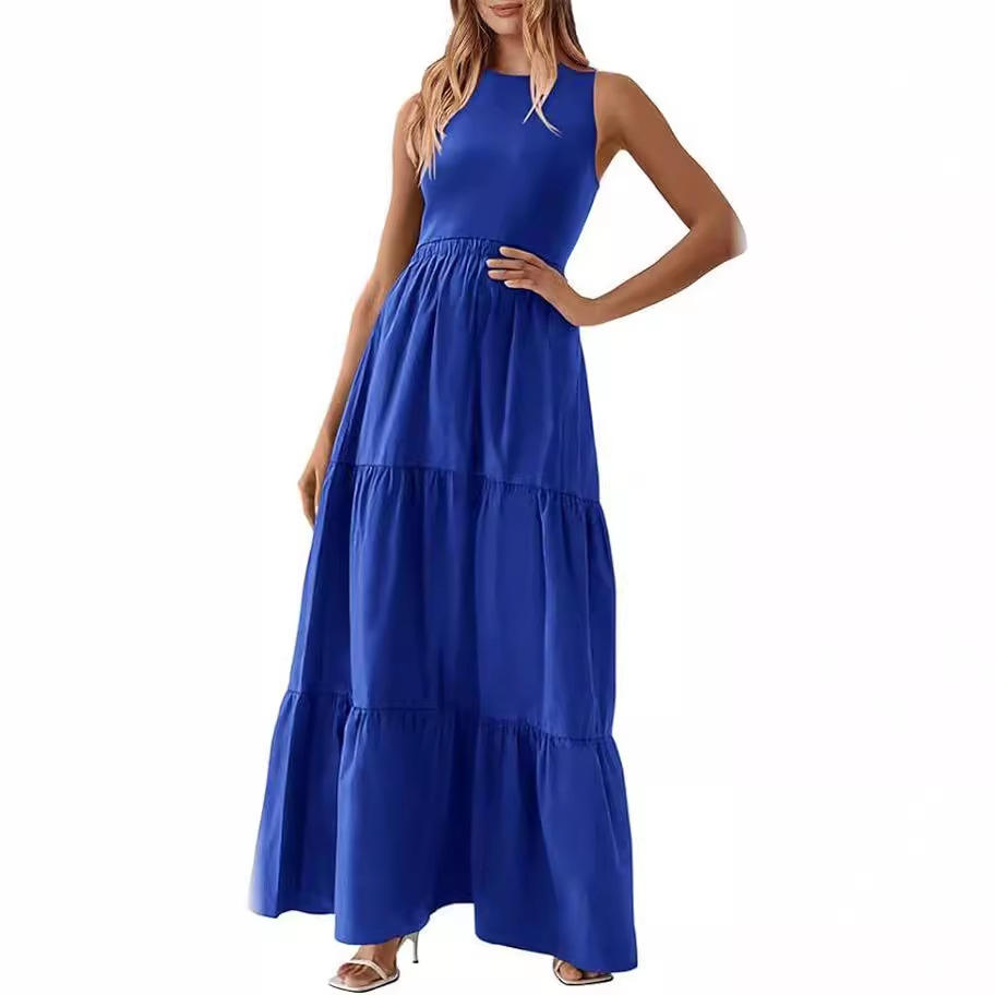 Sleeveless Crewneck Sundress Maxi Long Vacation Outfits
