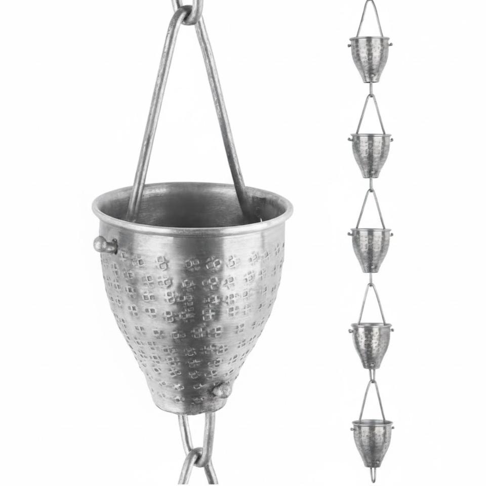 Prime Quality Aluminium Rain Chain Gutter Downspout Replacement With Textured Cups Outdoor Garden Decor For Soothing Water Sound
