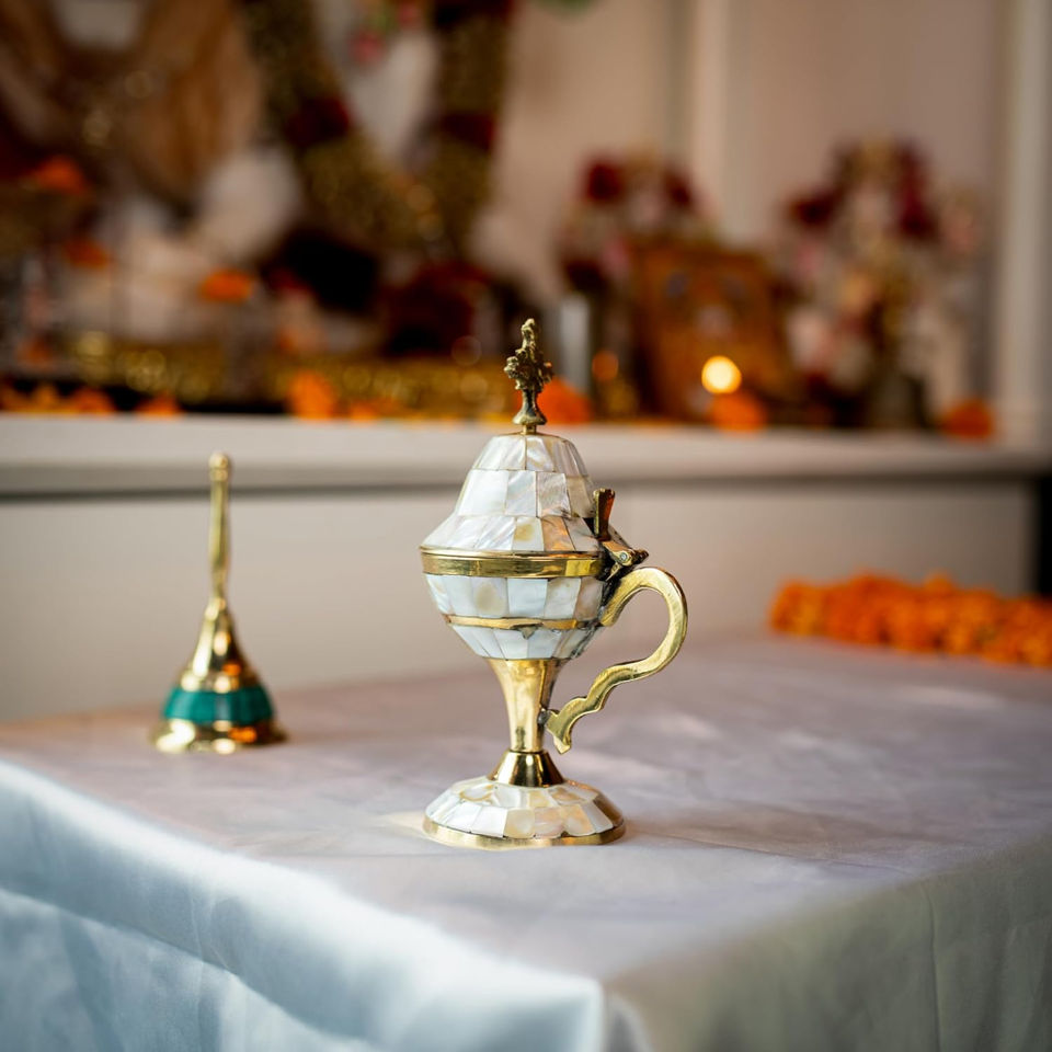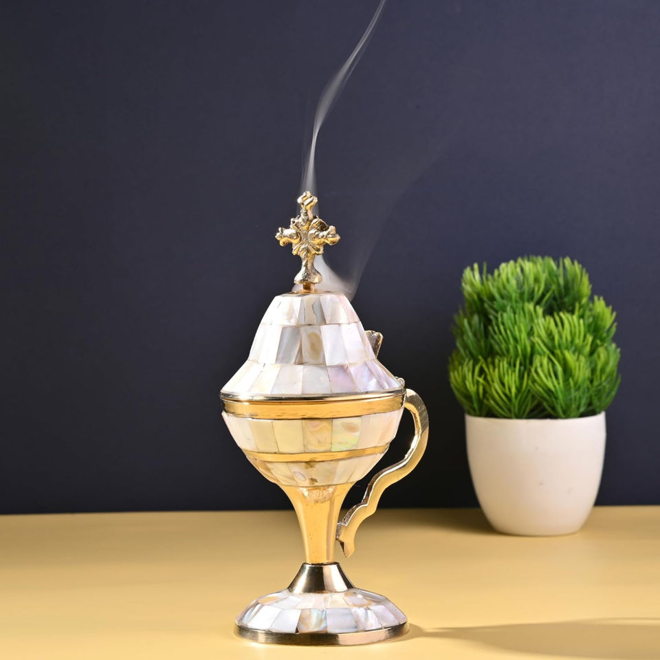 Prime Quality Brass Incense Burner With Mother of Pearl Sea Shell Burner Holder With Handle for Home Office Decor