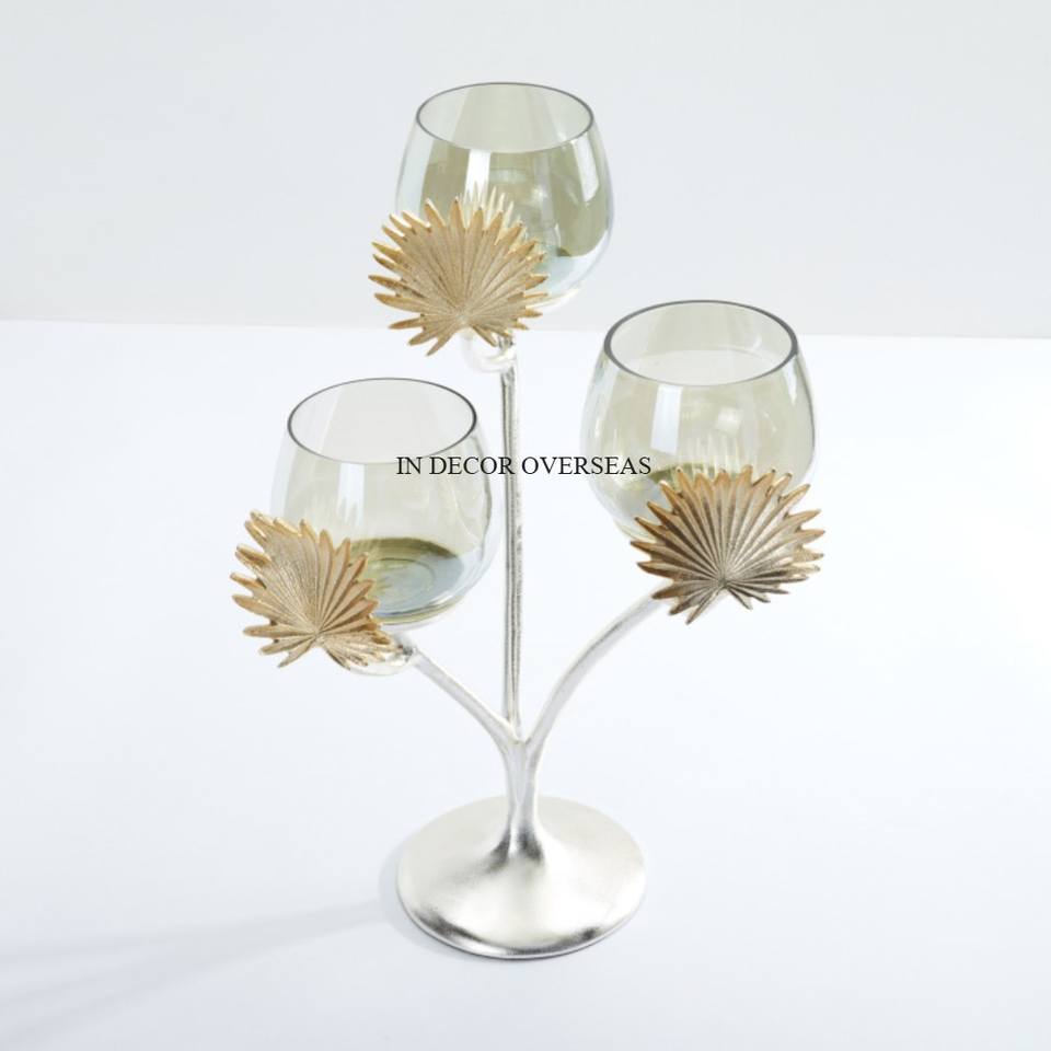 Prime Quality Clear Glass And Unique Gold Plated Leaves Designer Made Candle Stick Holder For Home And Hotel Dining Table Supply