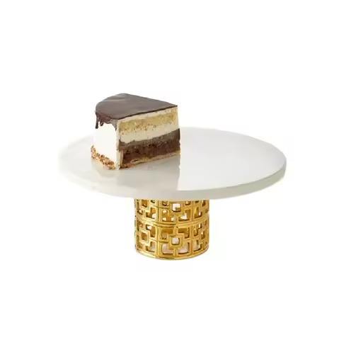 Prime Quality Marble Cake Stand for Metal Base for Customized Size Cake Holder Handmade Round Shape Sweet Server Stand