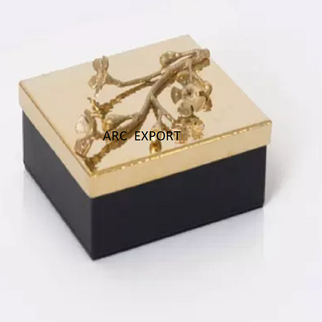 Prime Quality Solid Brass Gold Polished Sweet Box With Leaf Designing Lid Square Shape Sweet Box For Sale At Cheapest Price