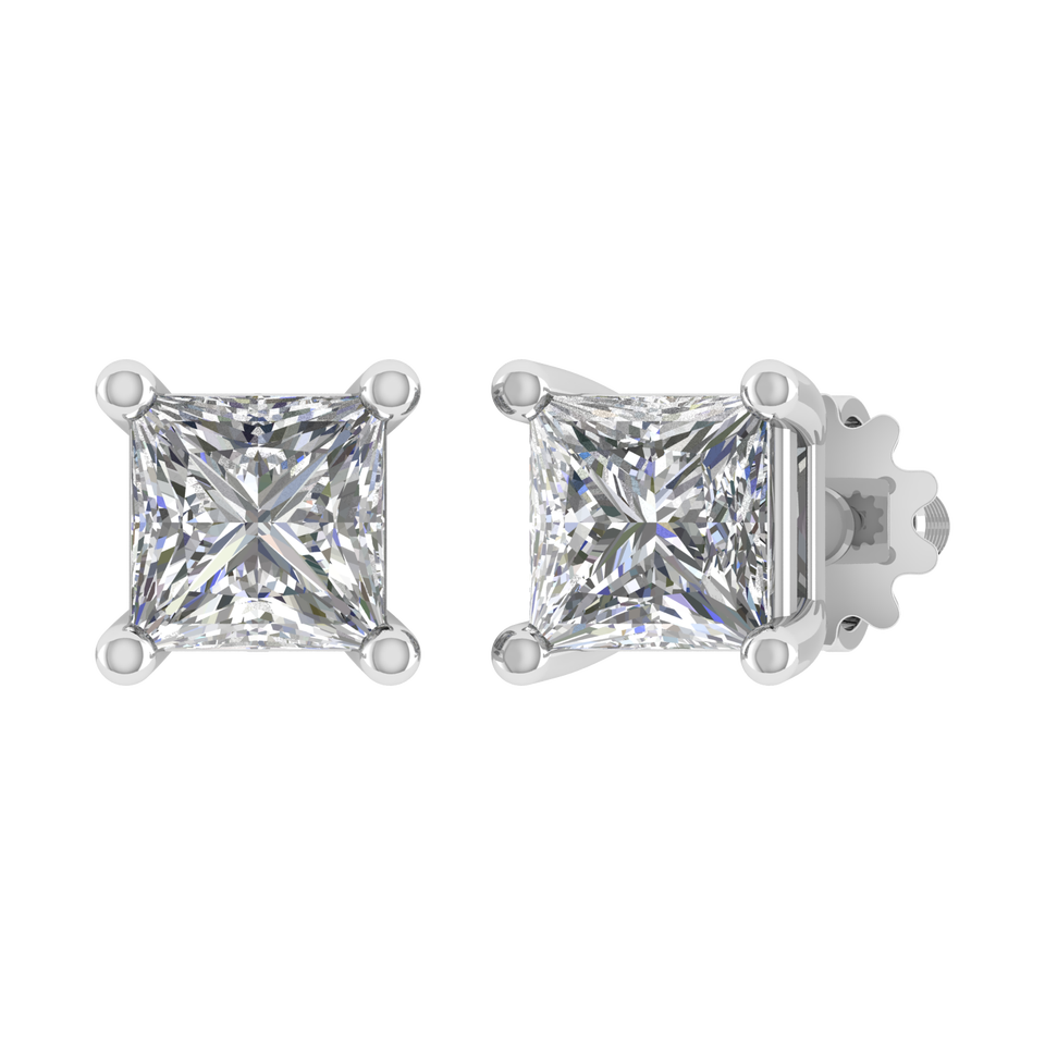 Princess Cut 925 Sterling Silver Gold Plated 3.2mm Four Prong Solitaire VVS D Moissanite Stud Earrings Women Luxury