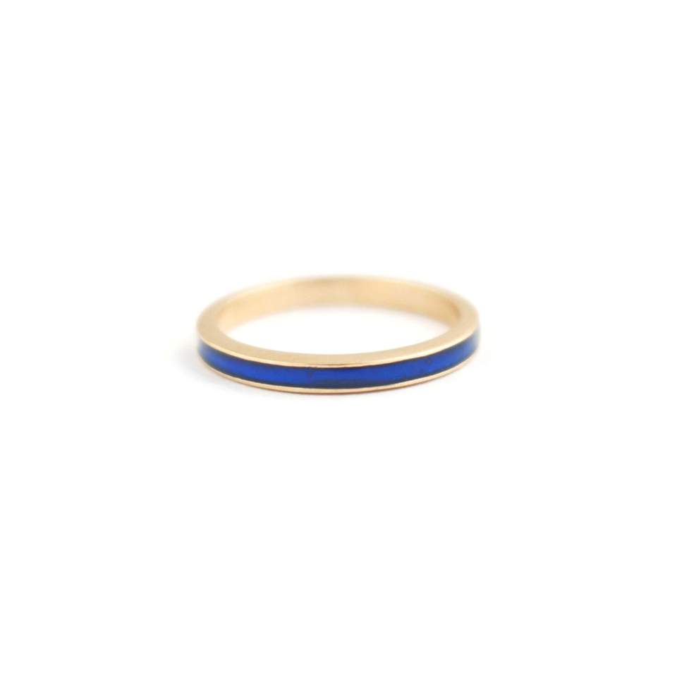 Wedding Band Ring 14K Rose Gold Blue Enamel White Yellow Gold Stackable Ring For Women