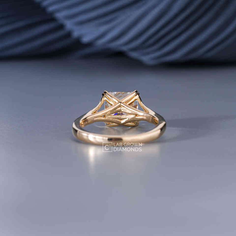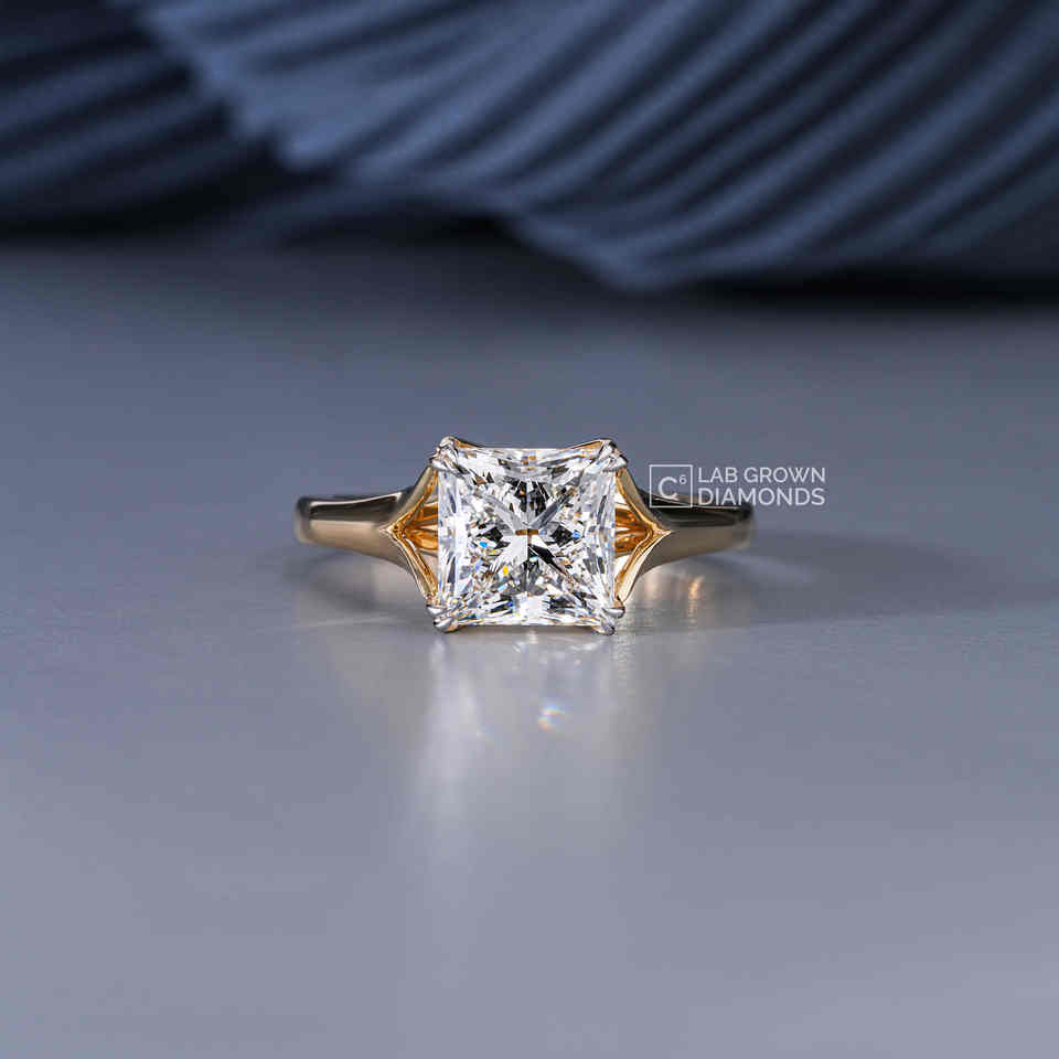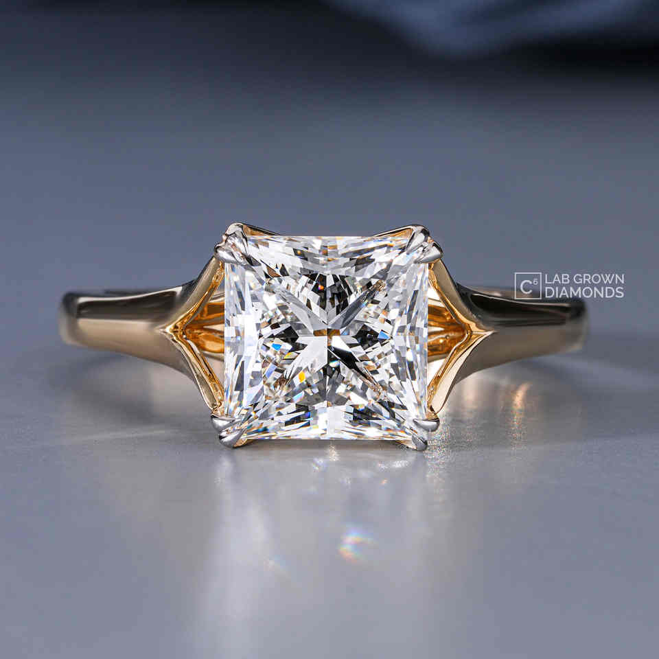 Princess Cut Lab Grown Diamond Solitaire Ring S925 Sterling Silver Yellow Gold Plated Luxury 3.04 Carat EF+ Color VS+ Quality