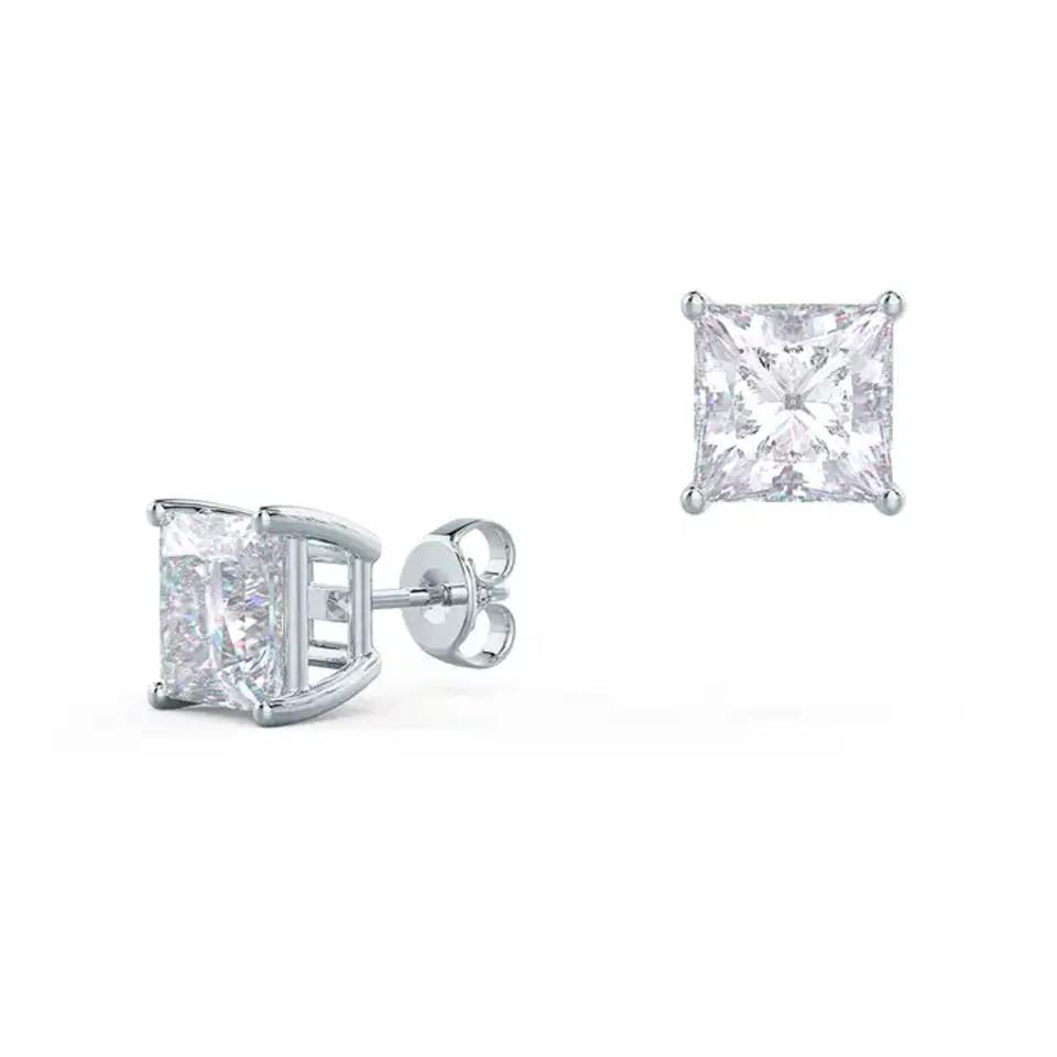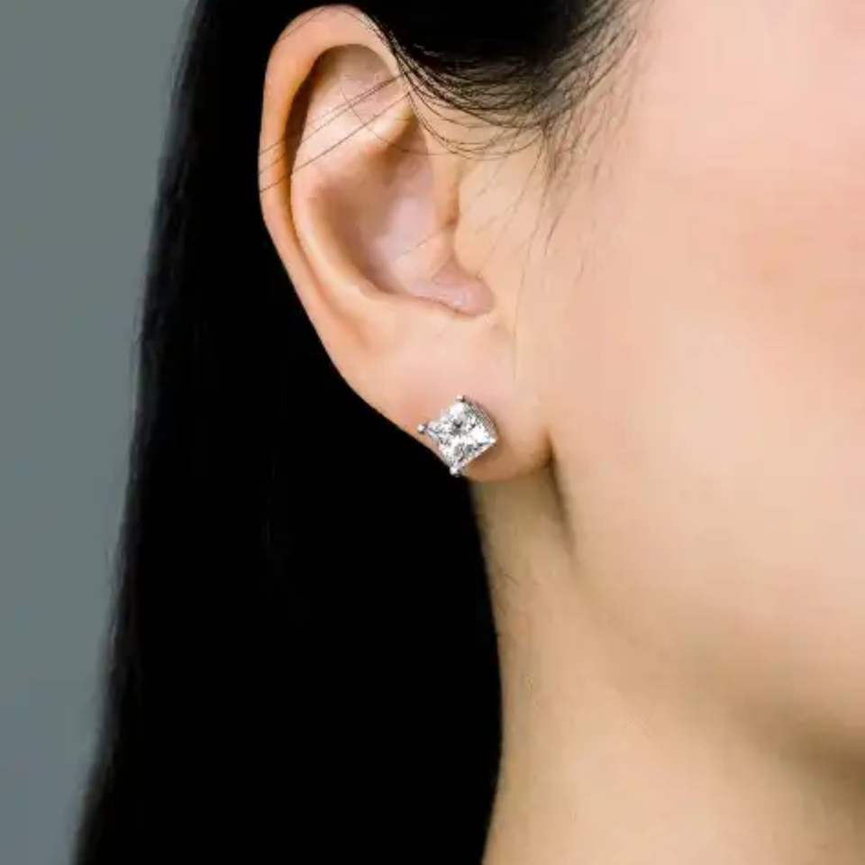 Princess Cut Lab Grown Diamond Stud Earring Man Made Diamond VVS Clarity DEF Color 18K Gold Diamond Earring.