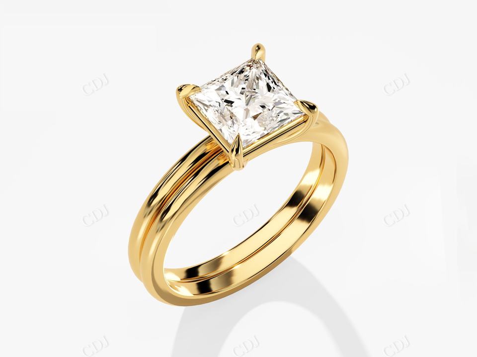 Princess Cut Moissanite Solitaire Engagement Bridal Ring Set 14K Solid Yellow Gold Plain Wedding Band Certificated Wedding Band