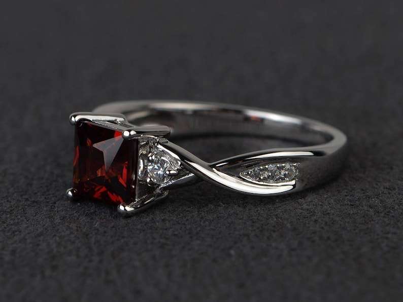 Princess Cut Red Garnet Engagement Ring Gemstone Ring January Birthstone Sterling Silver Jewelry