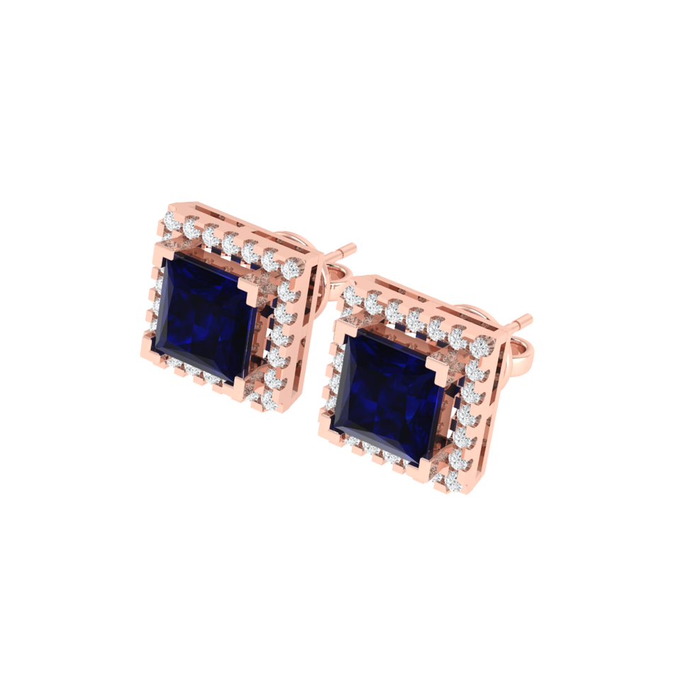 Princess Cut Sapphire Gemstone Stud Earrings 2.48 Carat Total Weight White/Yellow/Rose Gold Plated Sterling Silver Fashion