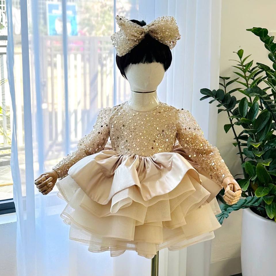 High Quality Custom ODM Autumn Outfits Long Sleeve Princess Sequin Dress for Baby Girls Made in Vietnam