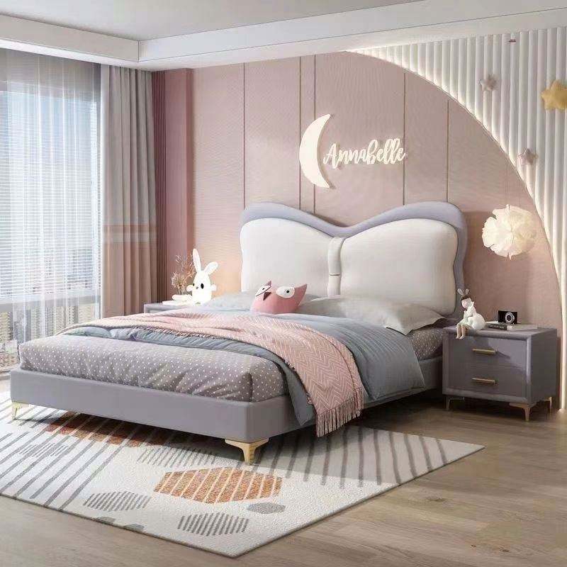Princess Kids Bed Modern Minimalist Upholstered Single Bed for Girls Youth Bedroom Chic Design