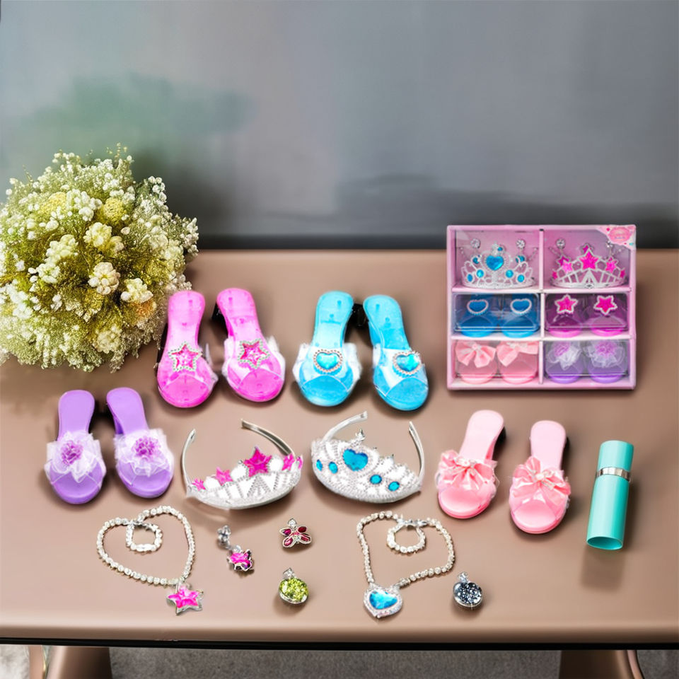 Princess Suit Set for Kids Shiny Crown Necklace Shoes & Fashionable Plastic Makeup Wig for Playtime