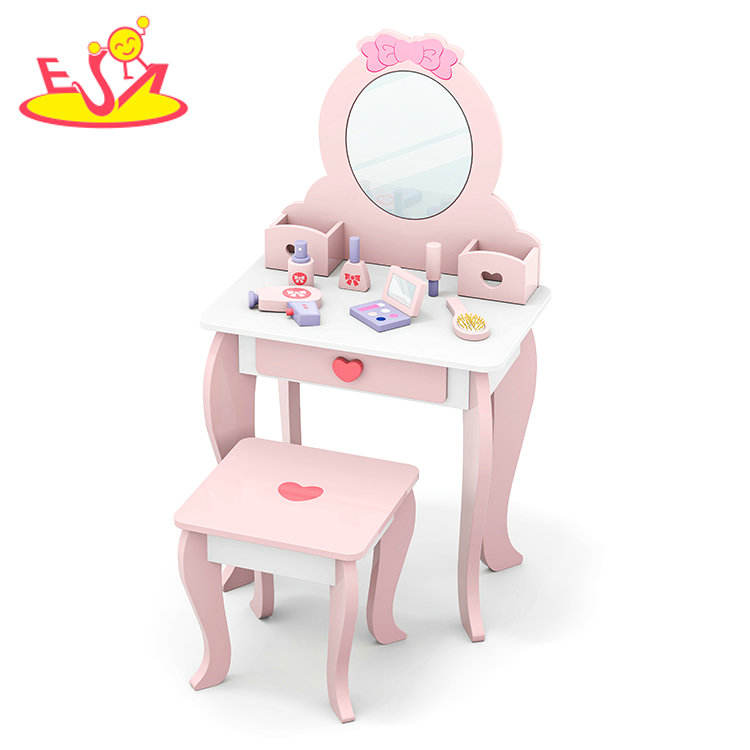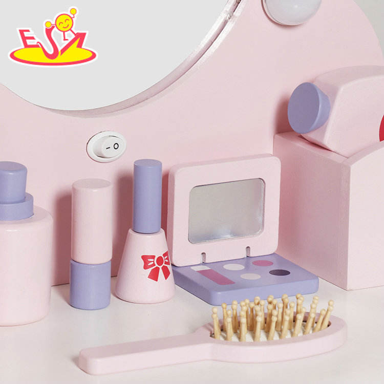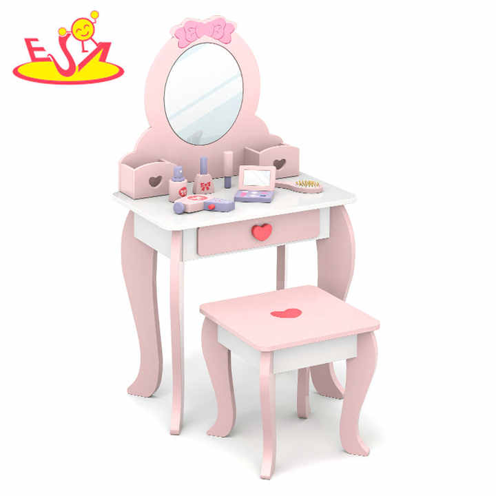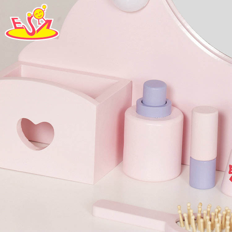 Princess Vanity Table Set with LED Lights and Mirror - Pretend Play Makeup Toy with Cosmetic Accessories for Girls W08H223