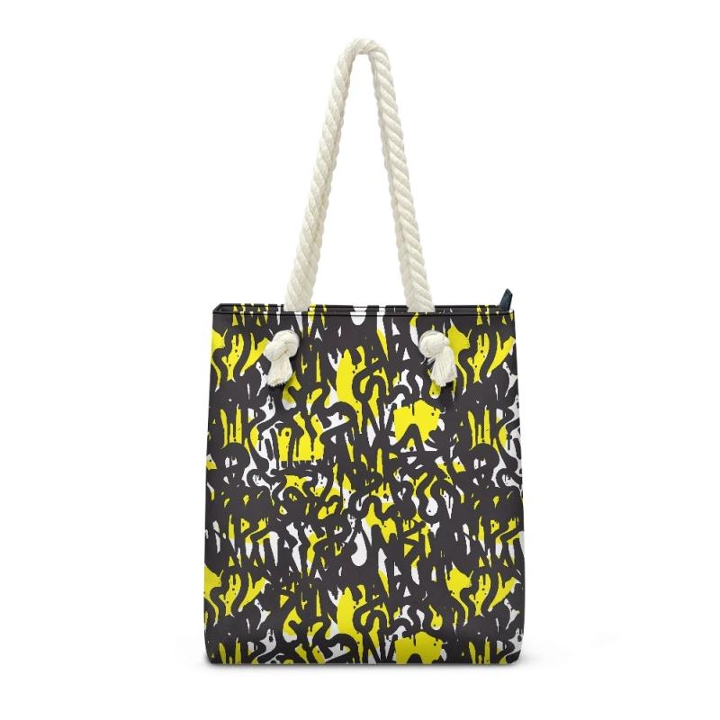 Print Demand Dropship Women PU Handbag Graffiti Style Pattern Beach Shopping Tote Bag with Zipper Closure Practical Classic Rope
