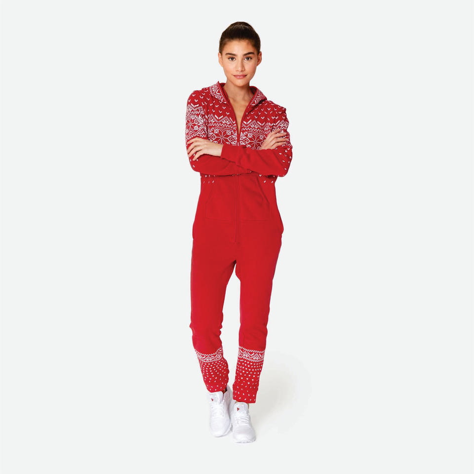 Print Detail and Embroidered Logo 50% Polyester 50% Cotton Side Pockets With Zipper Closure Unisex Red Alpine Jumpsuit