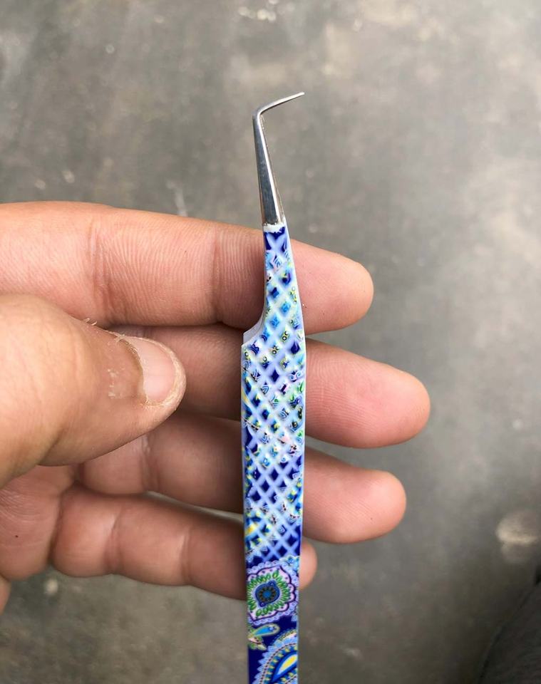 Print Logo Fiber Tip Eyelash Tweezers 90 Degree Nano Grip Tweezers Custom Private Label Lash Extension Tweezers