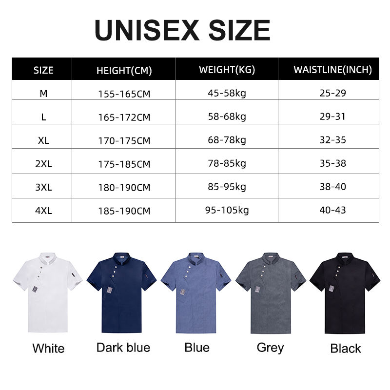Print T Shirt Men Grey Chef Coat Logo Short Sleeve Chef Jacket Apr Waiter Work Clothes Unisex Cook Kitchen Restaurant Uniforms