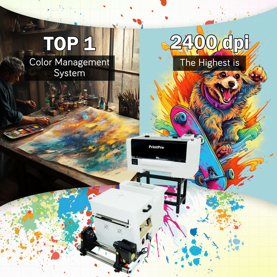 PrintPro 2024 DTF Printer I3200-A1 4 Heads 24inch Digital Multicolor DTF Printer Powder Shaker for Tshirt Garment Film Transfers