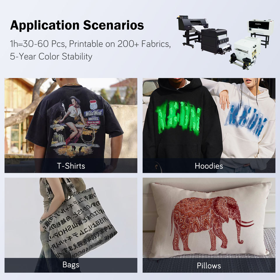 PrintPro Large Format 60cm Dtf Printer 4 Head Tshirt Printing Machine with Automatic Oven Shaker 24" Dtf Printer Set