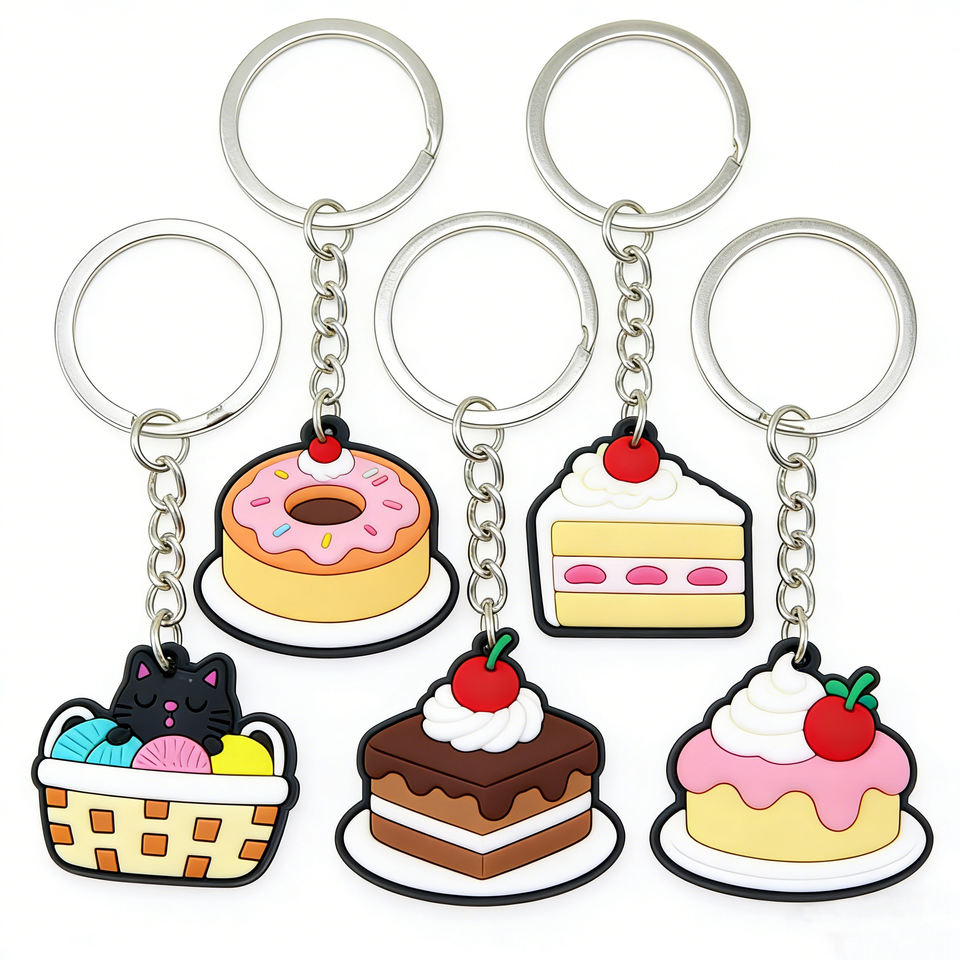 Printed 2D Effect PVC Soft Rubber Keychain Backpack Accessories Coin Pouch Pendant Festival Small Gift