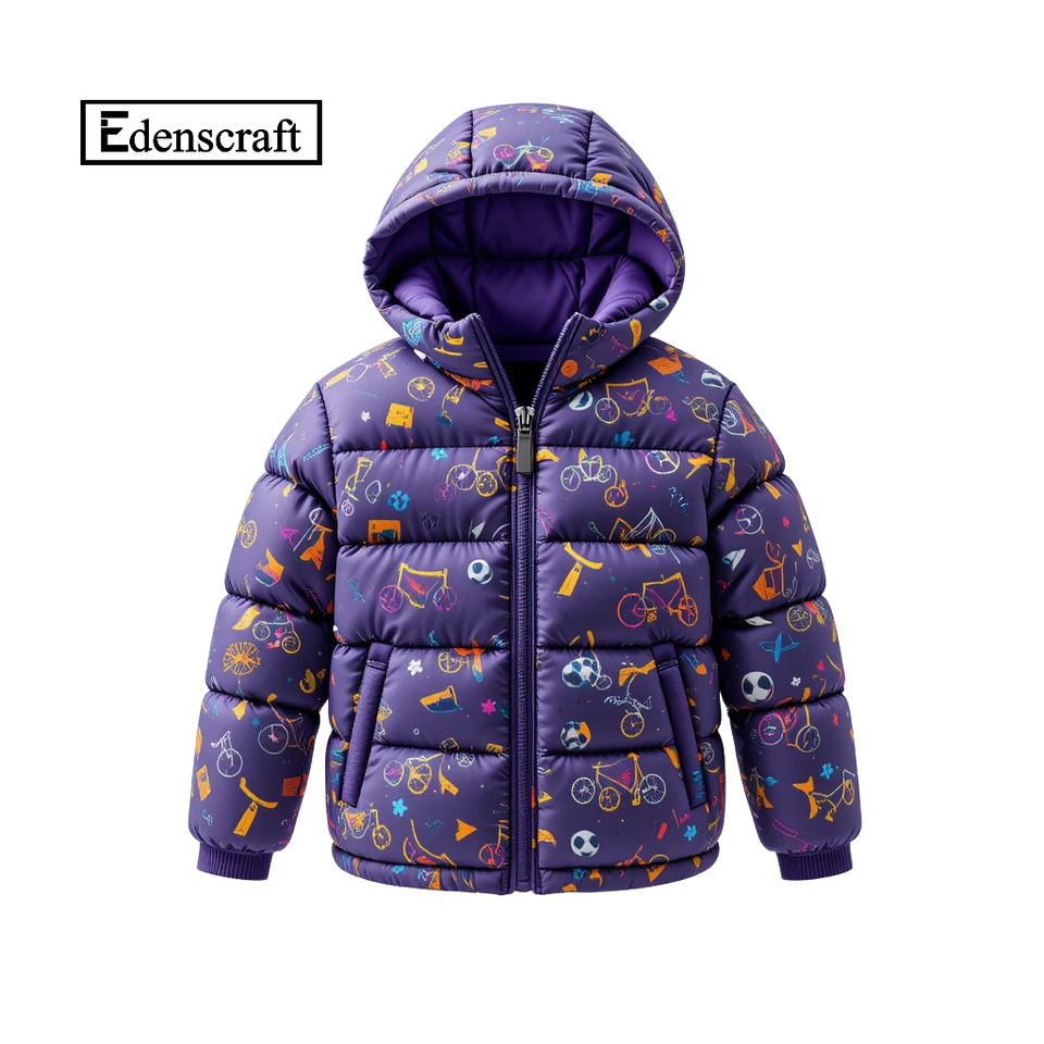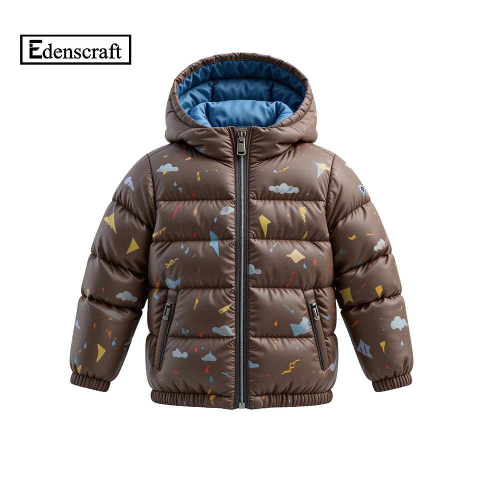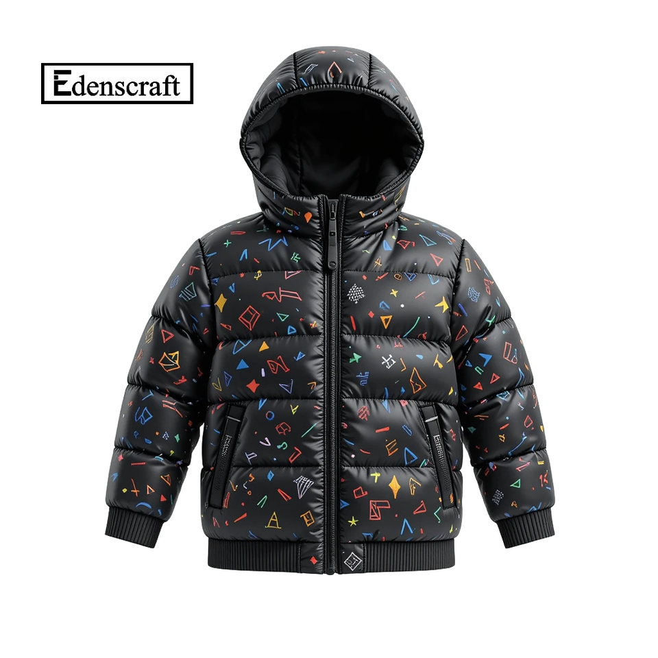 Printed Black Insulated Hooded Toddler Boys Jacket Quilted Warm Winter Spring Autumn Jacket for Kids Boys padded Windbreaker