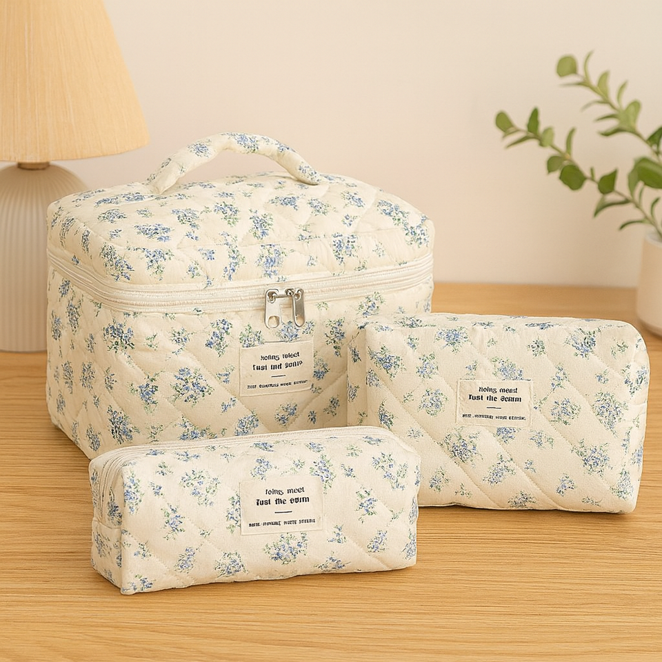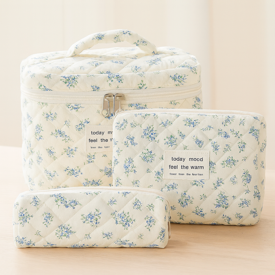 Printed Branding Quality Wholesale China Large Floral Pouch Travel Quilted Zipper Canvas Cosmetic Bag Set Custom Logo Women