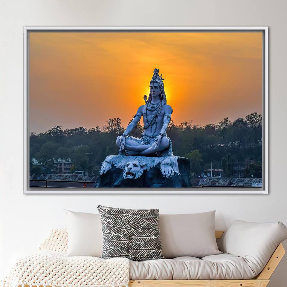 Printed Buddha Art Canvas: Indian Sunset Wall Decor, Elegant Home Panel,1P:White Framed