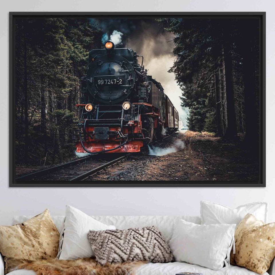 Printed Canvas: 3D Train View, Farmhouse Decor Artwork,BLACK FRAMED CANVAS