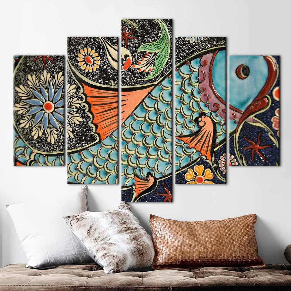 Printed Canvas: Abstract Fish Poster with Vibrant Colors,5P Mix:Gallery Wrap